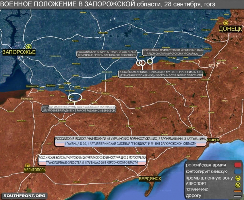 Ранее президент России Владимир Путин называл контрнаступление Украины провалом и отмечал большие потери со стороны Киева, в то время как министр обороны Сергей Шойгу считал запорожское направление наиболее напряженным. В общей сложности за период украинского контрнаступления потери ВСУ оцениваются в 71,5 тысяч человек.