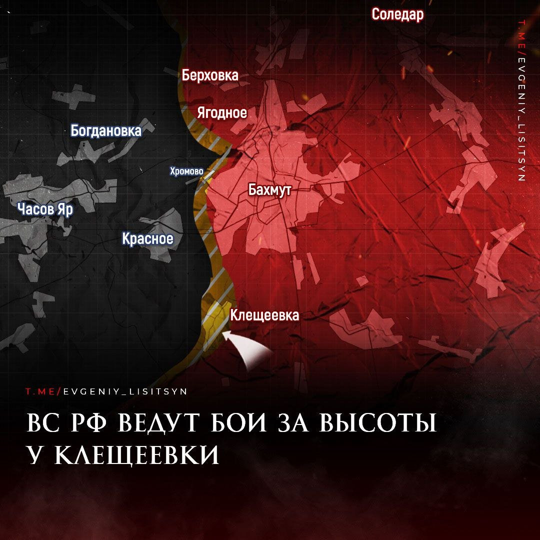 На Артемовском направлении наши войска закрепляются на северных окраинах Клещеевки, остальная часть села в который раз перешла в серую зону, продолжаются бои за ключевые высоты вокруг Клещеевки. Об этом в своём Telegram-канале сообщил военкор Евгений Лисицын.