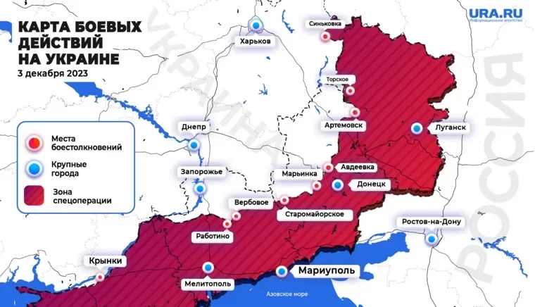 Карта боевых действий на сегодняшний день, 03.12.2023