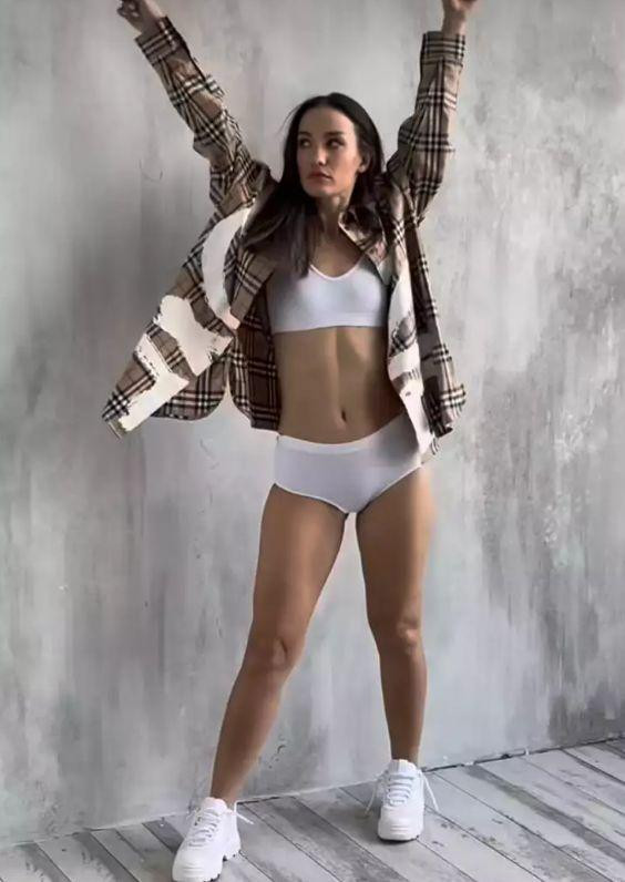 Для видео Виктория Дайнеко позировала в трусиках в форме шортов и бюстгальтере бра белого цвета, кроссовках и клетчатой рубашке. Знаменитость активно двигалась, принимая разнообразные позы. Поклонники пришли в восторг от безупречной фигуры звезды.