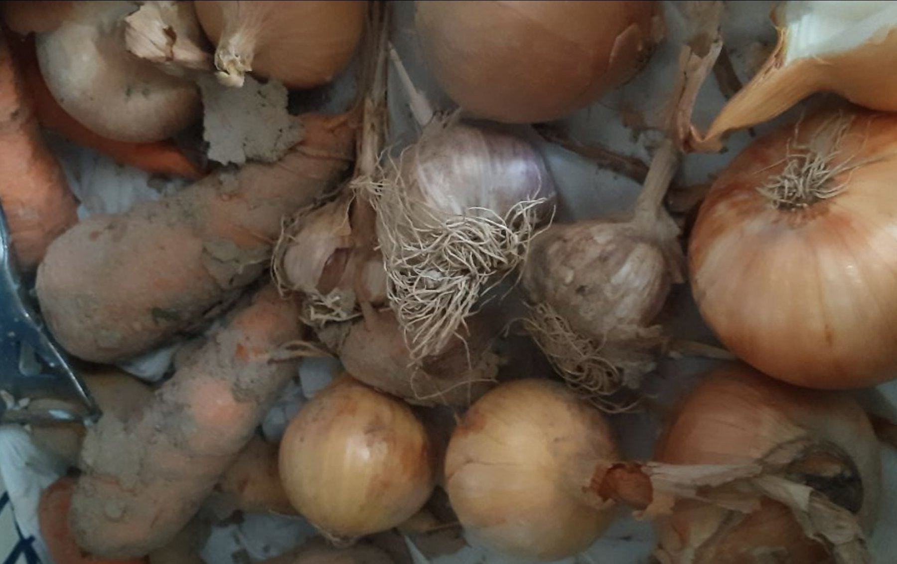 - Выложите чеснок в пластиковый ящик с сетчатыми стенами.